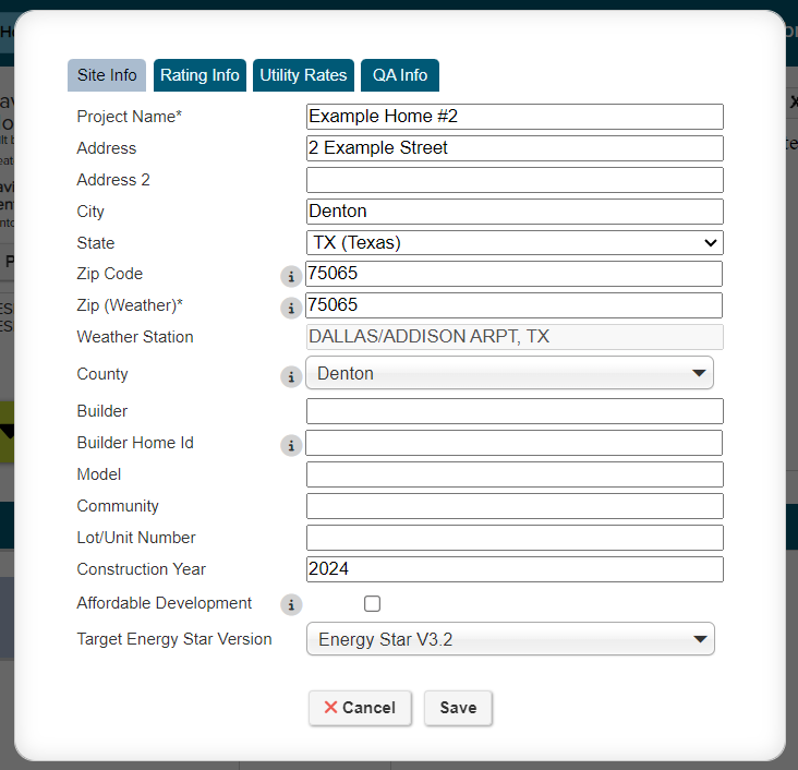 Ekotrope has a field under Project Info called Target Energy Star Version. This field allows the user to identify what version of Energy Star the project plans to meet. The selection in this field can affect what data is sent to RESNET.