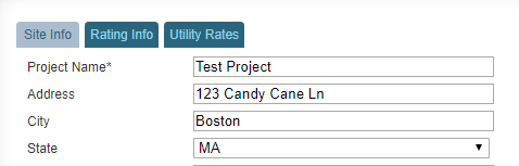 You will see three tabs: Site Info, Rating Info, and Utility Rates.