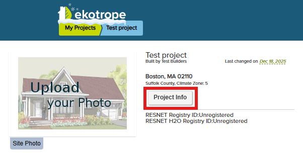 - The Site Info tab contains administrative information regarding your project. Here you can edit things such as the name of the project, the address, and the weather zip code should you choose to change climate zones.